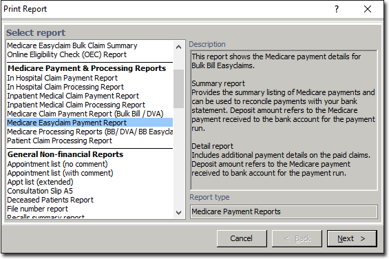- Summary report - a summary of Medicare payments. Use to reconcile payments with