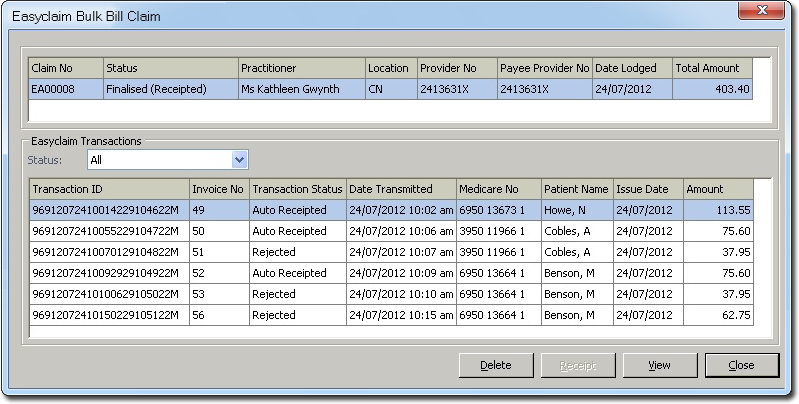 For information about Easyclaim status definitions, see Medicare Easyclaim Transaction Status.