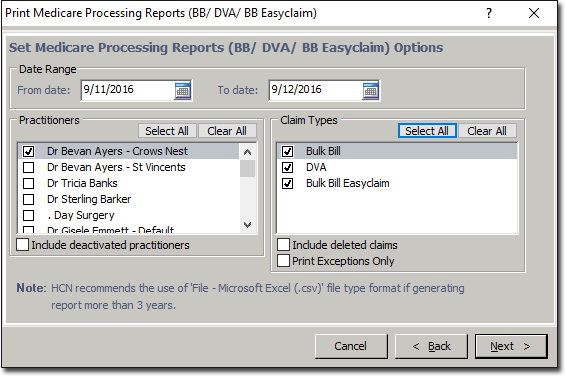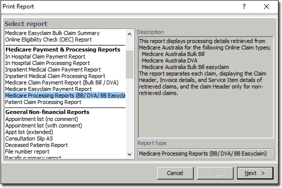In the Print Report window, select Medicare
