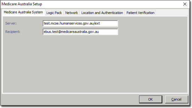 The Medicare System tab of the Medicare Australia Setup window allows you to set you Medicare system information.