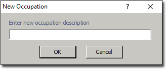 The New Occupation window appears. Enter a new occupation and then click OK. to save it.