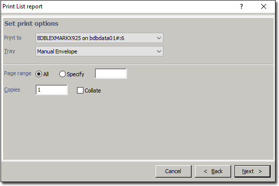 In the Print List Report window, choose your preferred print