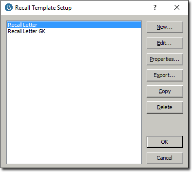 • To export an existing Recall Template, select the template and click Export. The template will be exported in Rich Text Format (RTF).