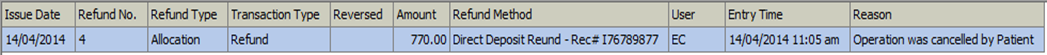 The refund also generates to the tab: in the , select the appropriate Practitioner and click the Refunds tab in the left margin. This does not affect today's unsettled banking.