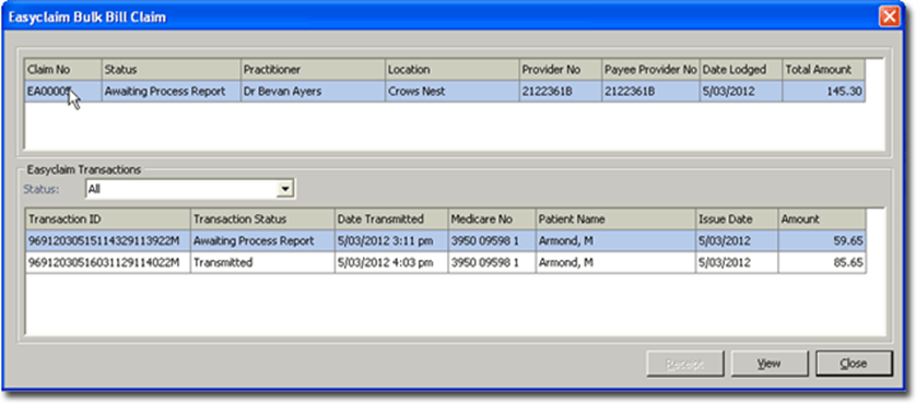 Filtering Easyclaim bulk bill claims in Bluechip: Via the Practice