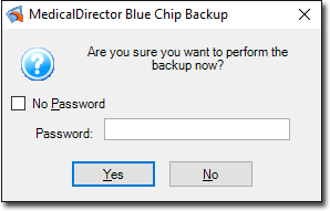 - Backups can be performed while Bluechip is running, although you should close all instances of Bluechip. Restore requires Bluechip to be closed.