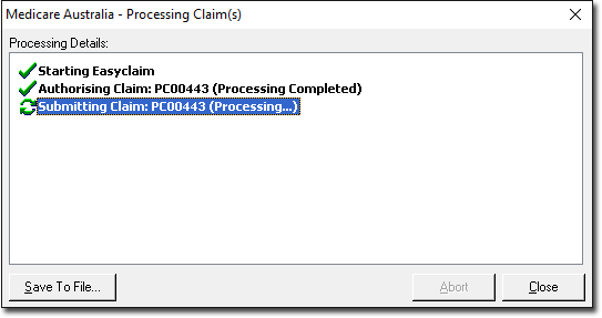 - If you have opted to Store the claim, the claim will be prepared and authorised, ready for transmitting to Medicare at a later, more convenient, time.