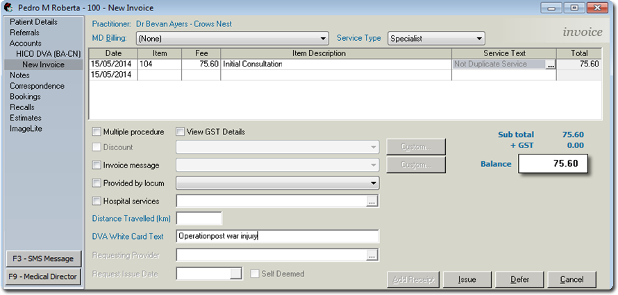 Bulk Bill Account is required to bill the claim for the Medicare Bulk Bill Patient. This verifies Medicare details and fees with Medicare when billing the claim.