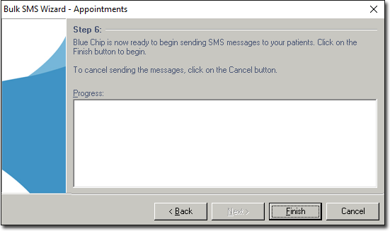 - The progress section displays the success or failure of each SMS message. Failed messages will be highlighted in red. If an error occurs while processing, you have the following options;