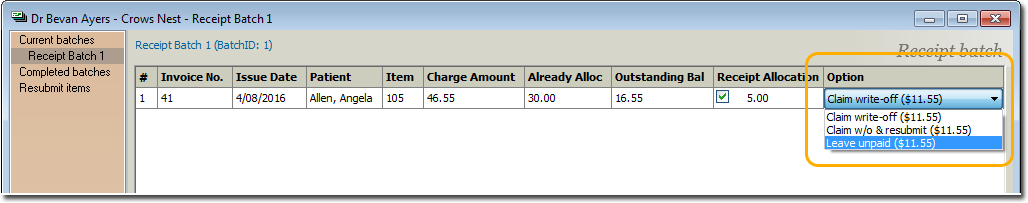 Step 7a: Receipting when you do not receive the full amount If you do not receive the full amount, you can choose to; Claim write-off Claim write-off, and resubmit Leave unpaid