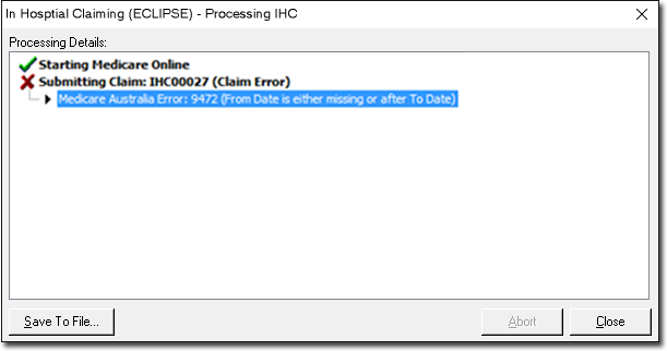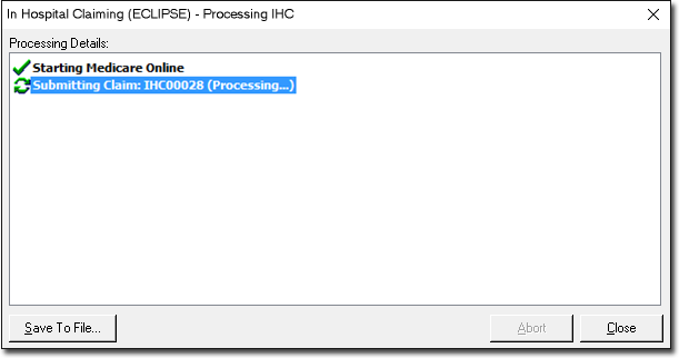 Claiming (ECLIPSE) – Processing IHC window appears. If there is