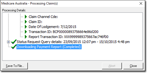 - Click Save To File to save the downloaded Payment Report. The Payment Report will consist of the summary of health fund payments, which will help the practice reconcile payments with the bank statement. It also consists of additional payment details on the paid claim.