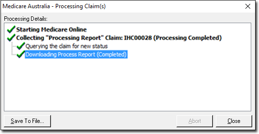 Medicare Australia – Processing Claim(s) window