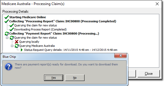 transmitting, the Medicare Australia – Processing Claim(s) window