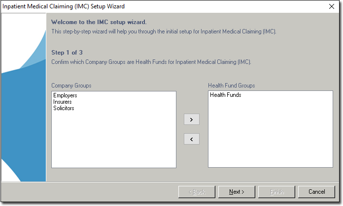 - Select an entry from the Company Group list on the left and then click the > button to transfer them to the Health Fund Group list on the right, or