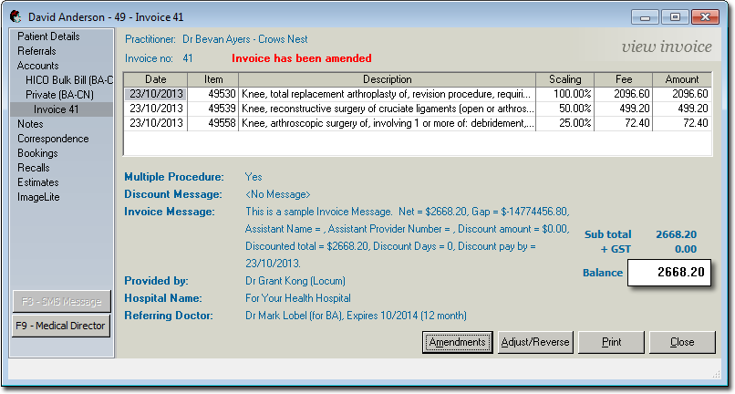 - Select a different referral to associate with this invoice. When amending an invoice this is the only field you can adjust.