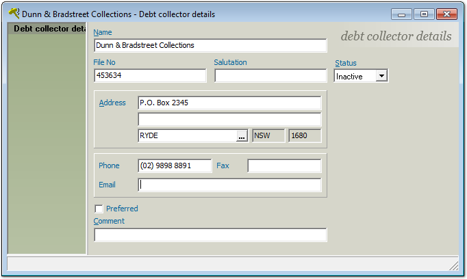 Open the record you want to mark as inactive. An example of a Debt Collector's record is used below.