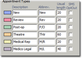 For each appointment type you want to record, indicate the following information: