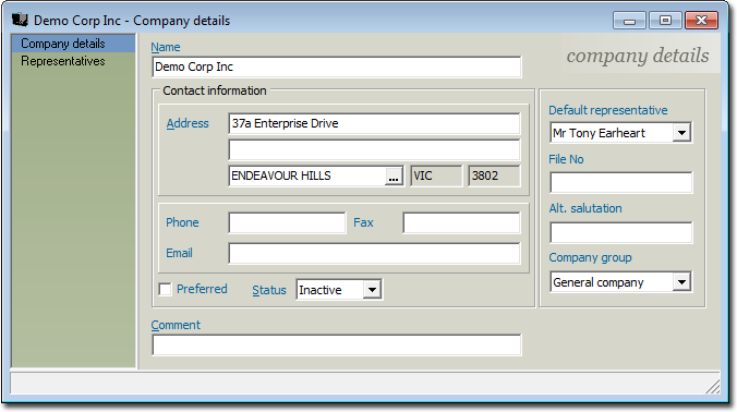 Select the record you want to reactivate, and then click Open The record's details window appears. Note that in the example below, the Status drop-down list towards the bottom of the record indicates that this record is currently 'Inactive'.