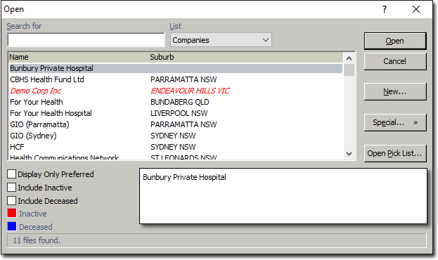 The Open window appears. Initially, records marked as inactive will not be visible.