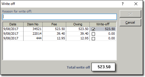 - Writing-off the total amount by ticking the check box in the Write Off field, or