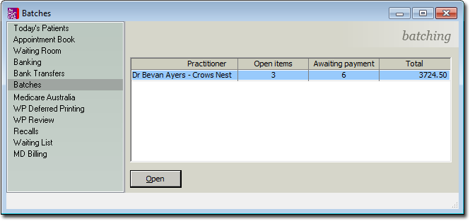 - If you are receipting a batch, click on Open. Enter the total amount of the payment and click OK.