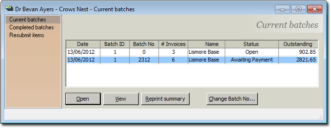 Highlight the practitioner for whom you want to issue or receipt a batch, and click