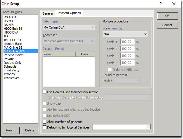 - Within the Account Class list, select the MA Online DVA class, so that it can be configured for batching.